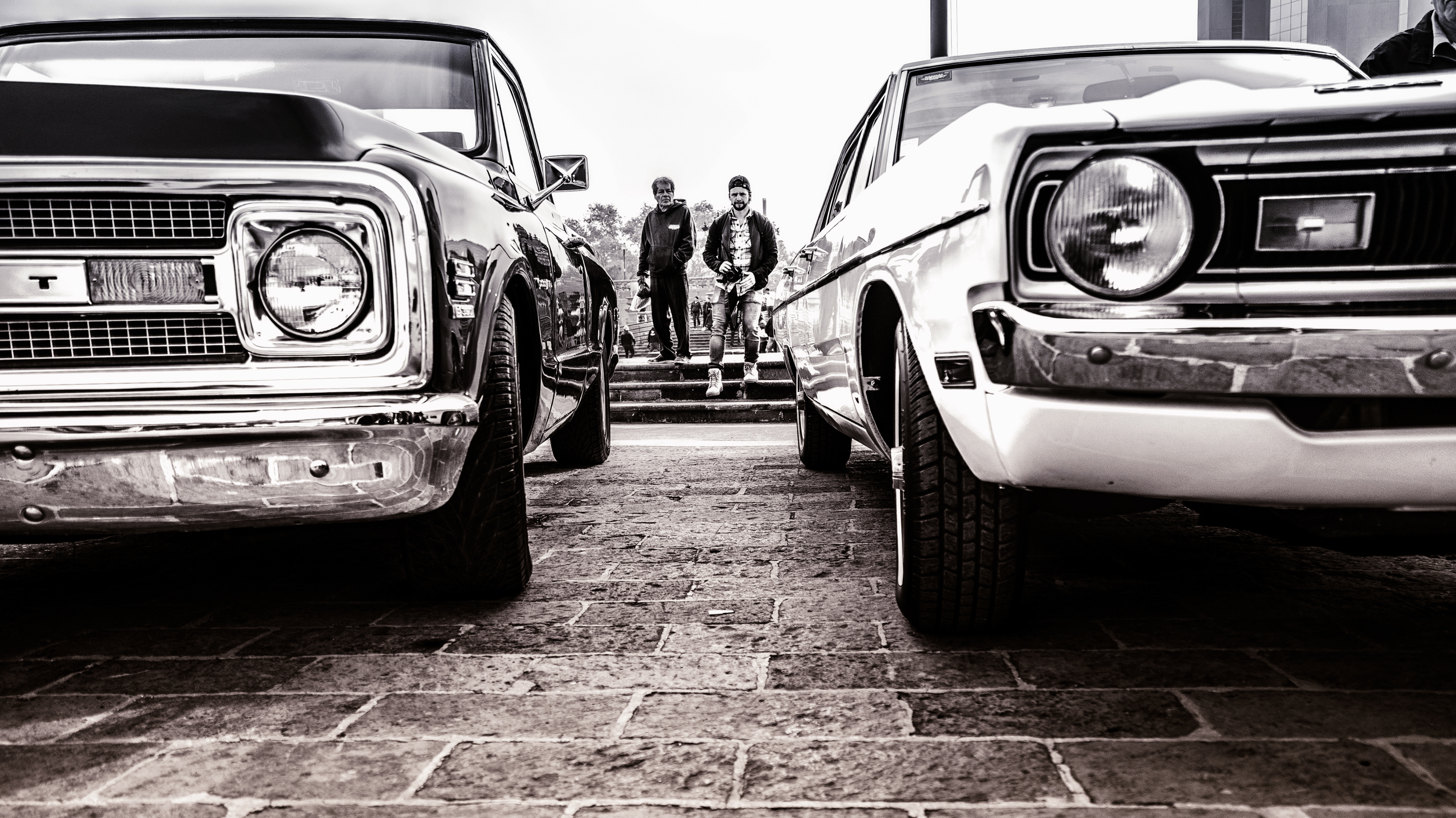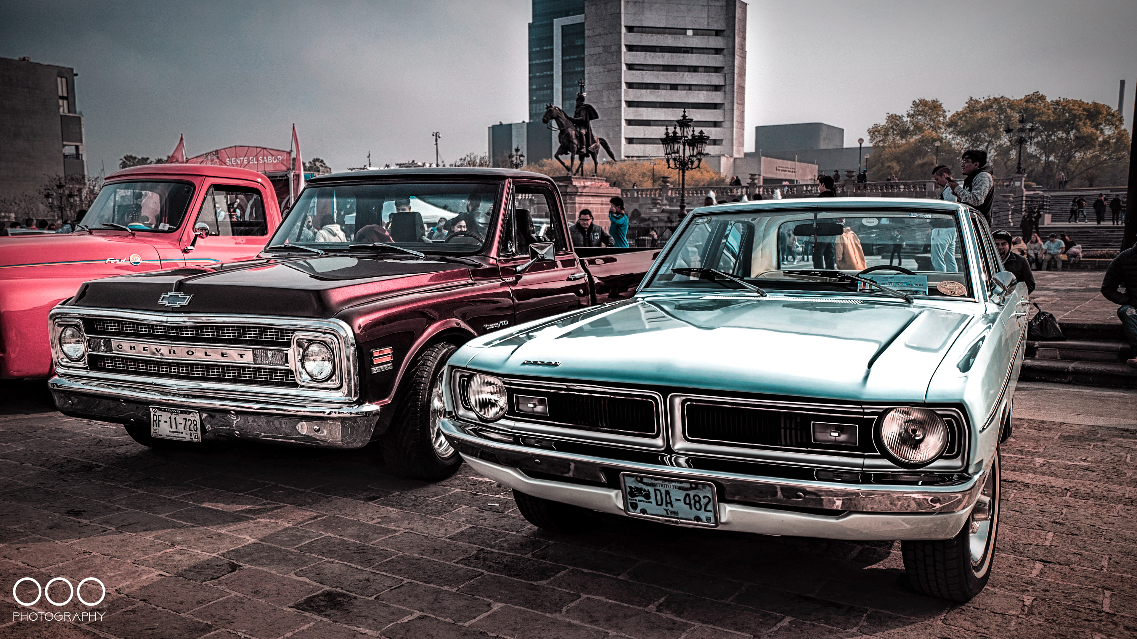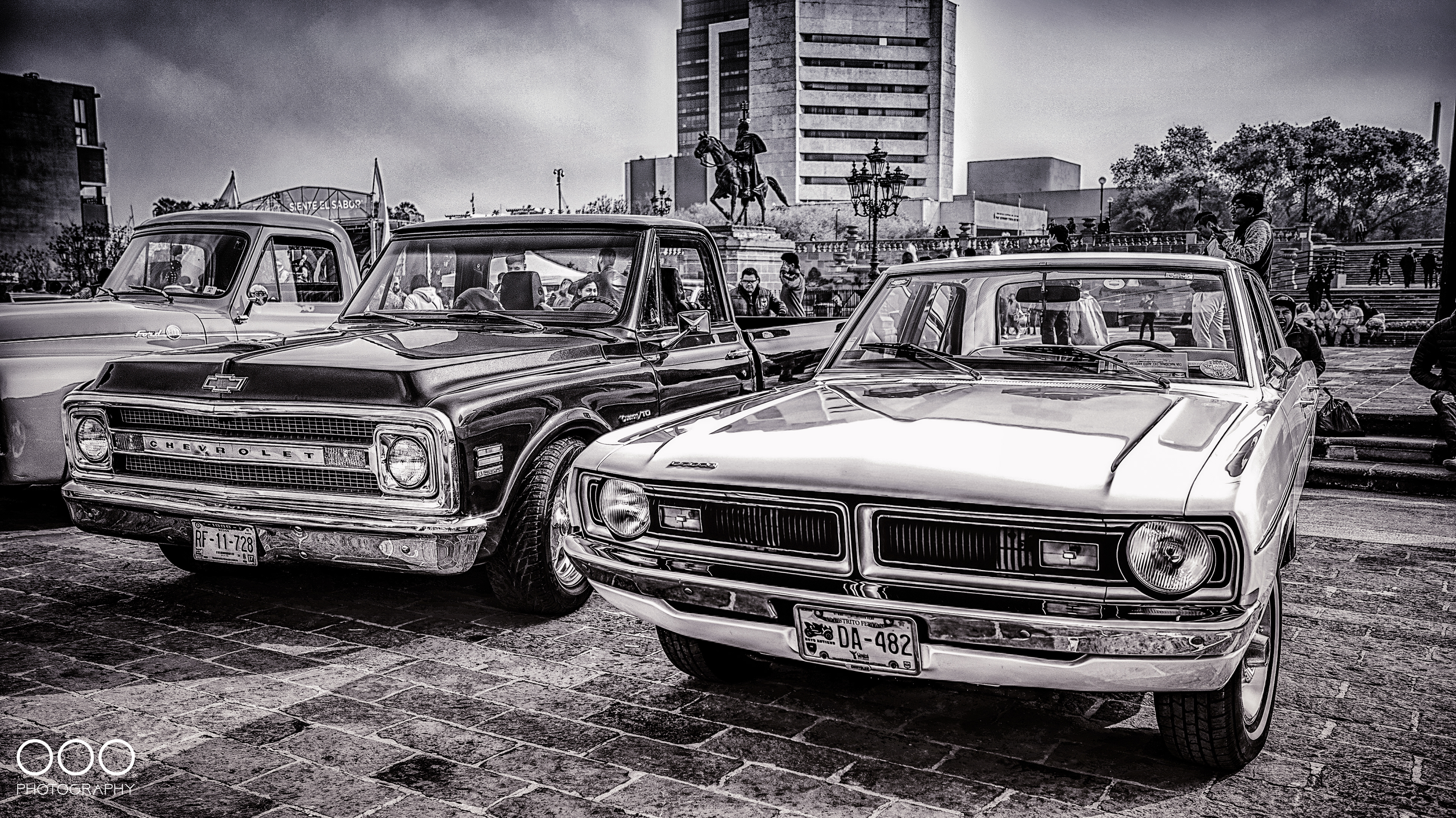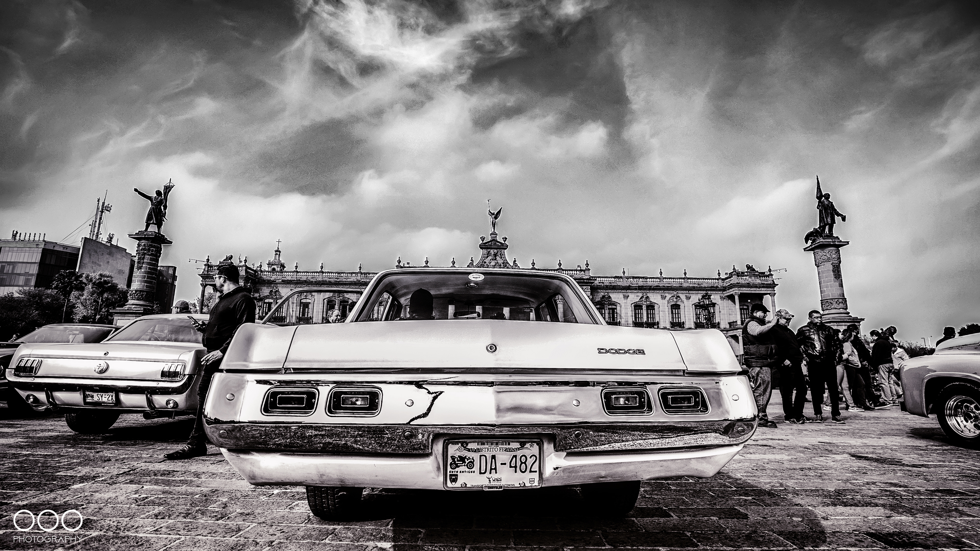 Fotógrafo en Monterrey, Nuevo León México. BW Fotografía de coches antiguos en frente de Palacio de Gobierno del Estado de Nuevo León en Macroplaza de Monterrey