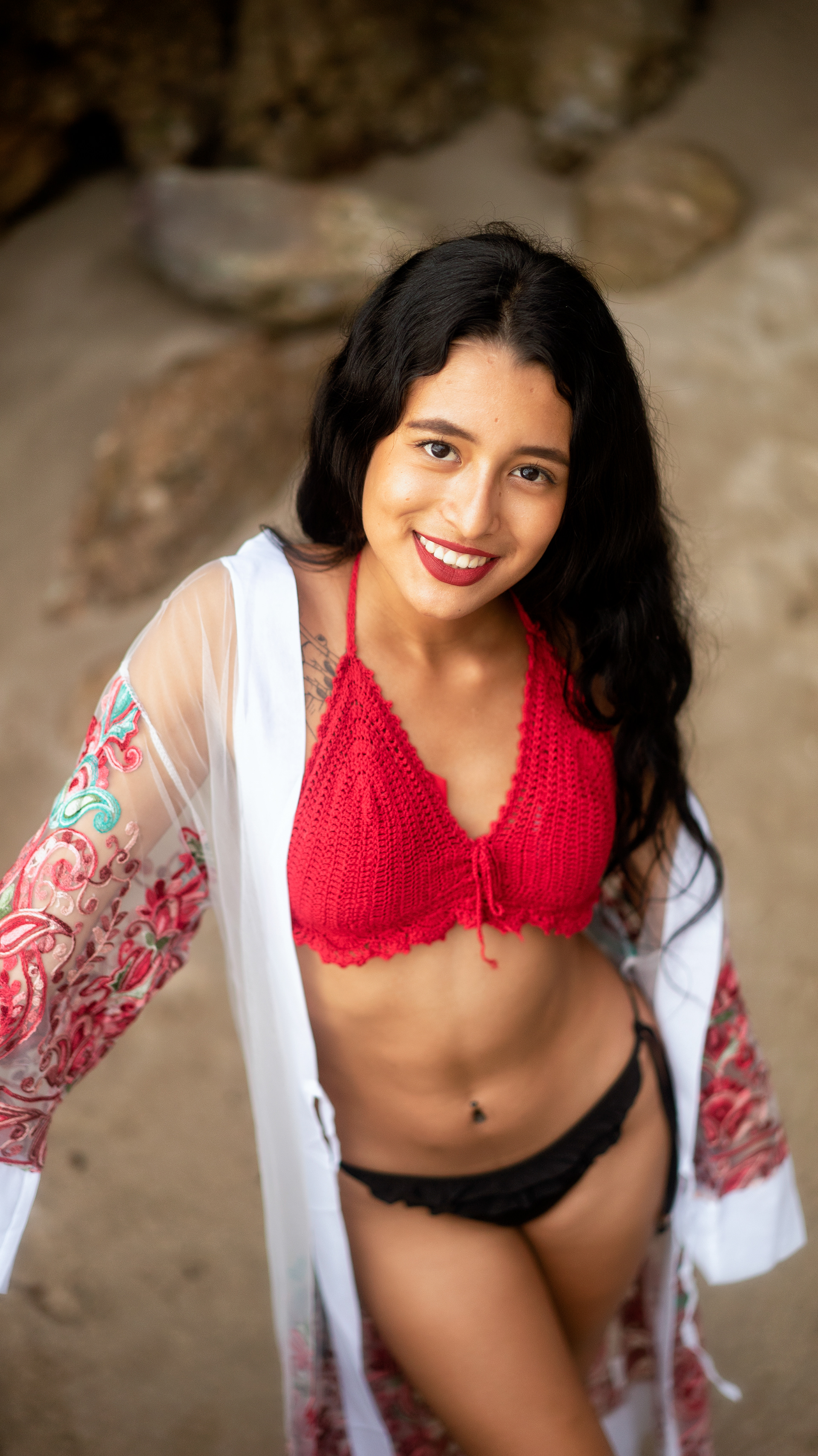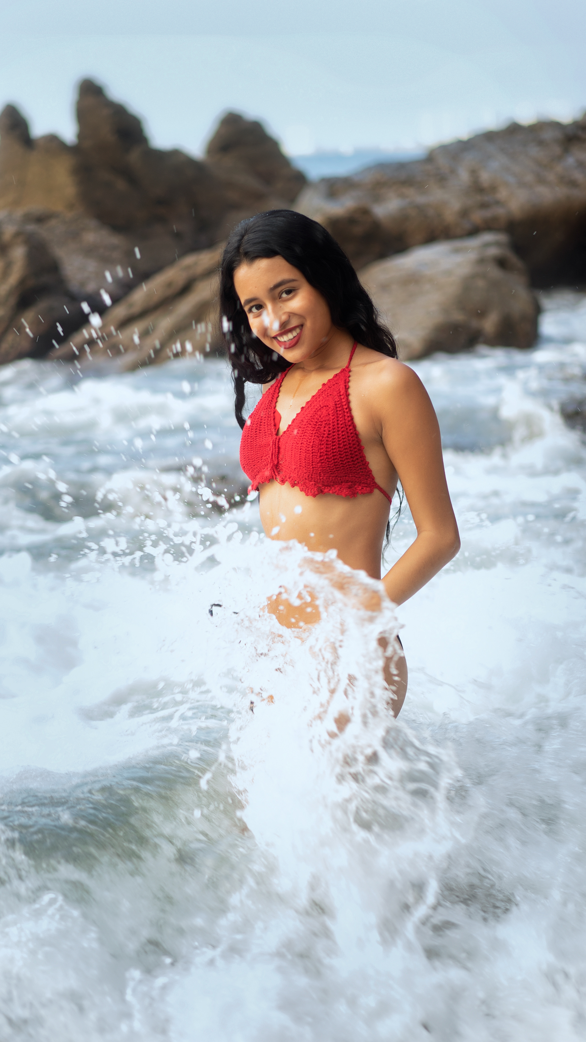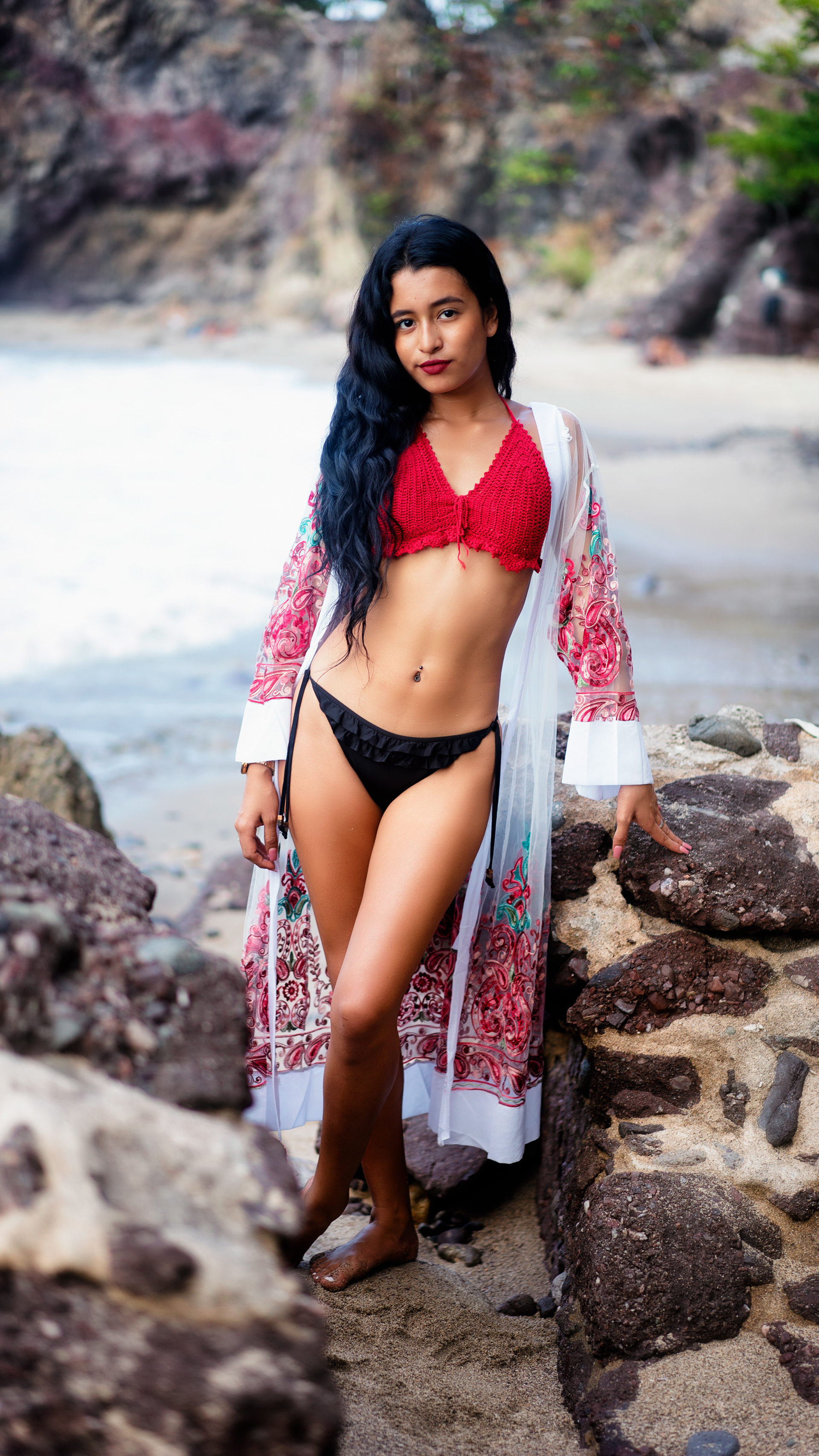 Portrait photography of young Latina woman on Beautiful beach.